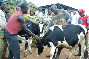 RUTSIRO - The Deputy Speaker of Chamber of Deputies, Ambassador Denis Polisi, yesterday honoured his pledge to support women farmers of Rutsiro District, Western Province, who could not succeed in using artificial insemination. During the recent parliamentary election campaigns, residents of Rutsiro District complained to Polisi that artificial insemination was not working properly and had instead requested for heifers. The Deputy Speaker who is also a senior member of Rwanda Patriotic Front (RPF), promised to give heifers from his personal farm to local associations; a pledge he honoured yesterday.