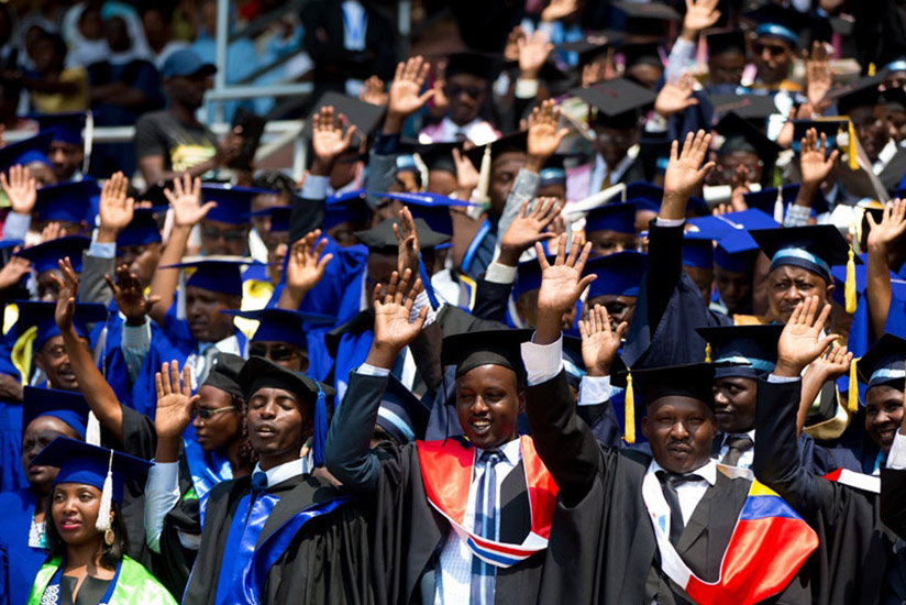 Graduates celebrate during a past University of Rwanda graduation ceremony. / File