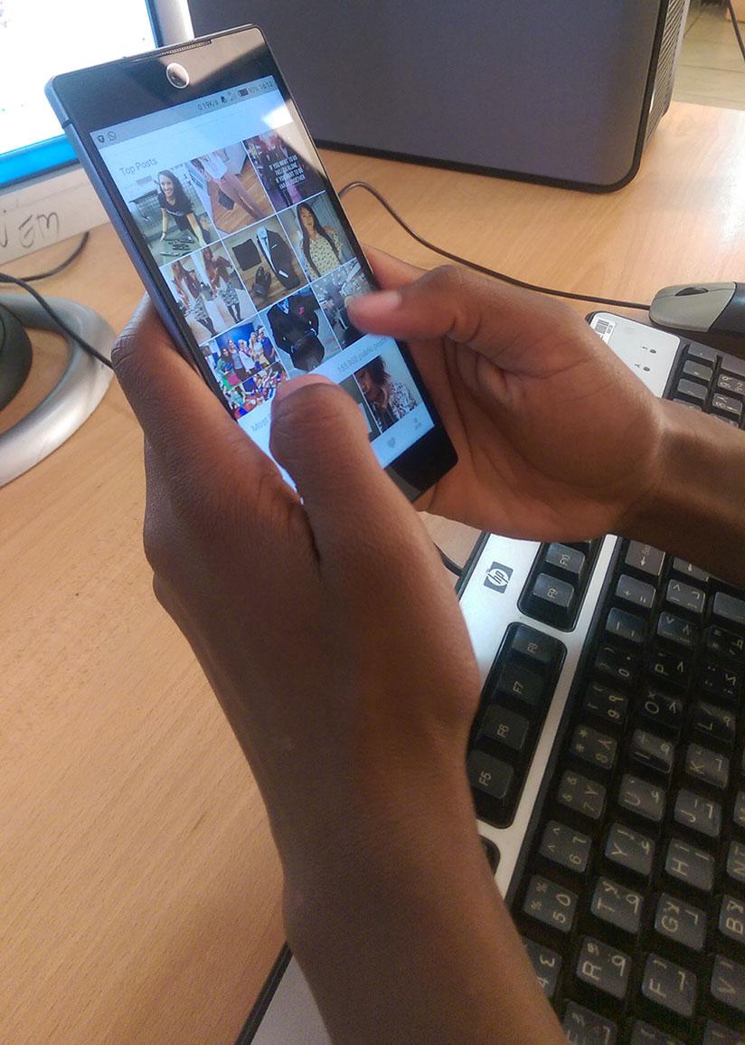 A mobile user checks photos online. Digital spend will drive growth of the entertainment and media industry in coming, according new report. / File