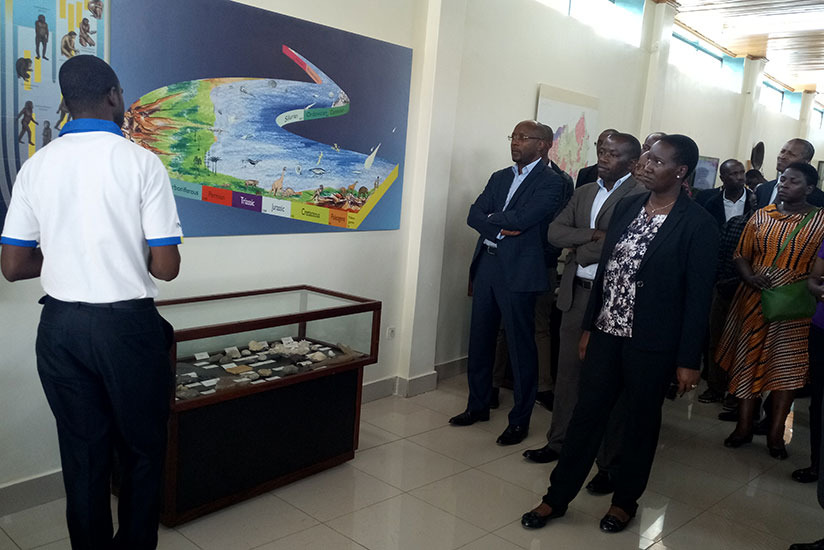 Uwacu (R) and other officials tour the museum during the launch of new artifact. / Jean d'Amour Mbonyinshuti