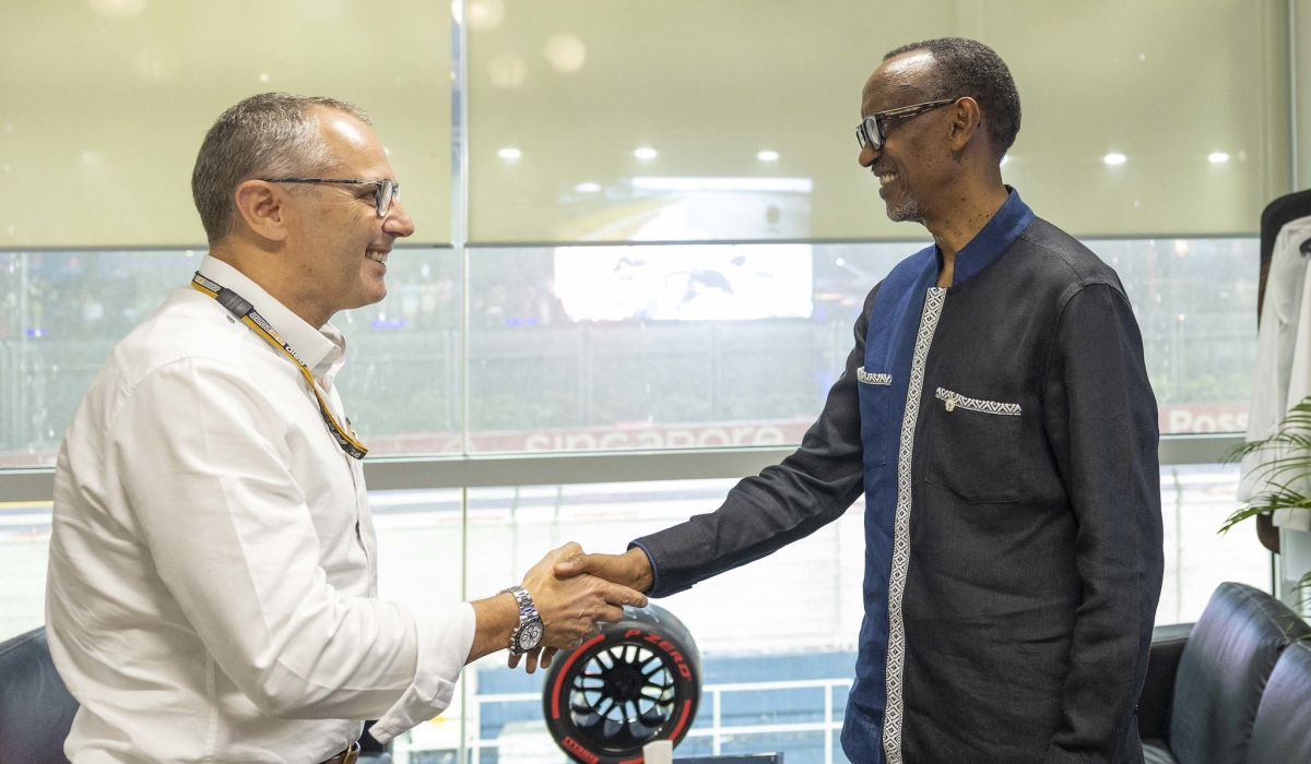 President Paul Kagame on Sunday met with Stefano Domenicali, Chief Executive of Formula One Group, at the Marina Bay Street Circuit, in Singapore. The president is on a 3-day visit to Singapore as both countries seek to deepen bilateral ties. Kagame also attended a dinner hosted by Prime Minister Lee Hsien Loong before watching the 2022 Singapore Grand Prix. The 2022 Singapore Grand Prix (officially known as the Formula 1 Singapore Airlines Singapore Grand Prix 2022) was a Formula One motor race held on October 2. During the race, Sergio Perez held off Charles Leclerc for his first-ever win on the streets of Singapore, while Carlos Sainz completed the podium and Max Verstappen finished seventh in an action-packed Singapore Grand Prix.