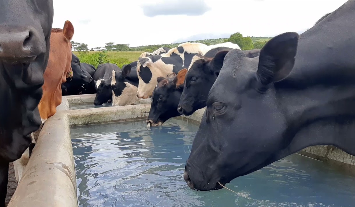 Cows drink water from a trough supplied by one of solar-powered boreholes constructed under the initial Rwanda Dairy Development Project (RDDP), in Eastern Province, in 2020 (Photo courtesy of IFAD).