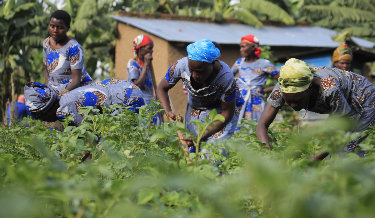 Women in Tuzamurane Cooperative work in their potato plantation in Musanze District. Targeted project beneficiaries are farmers, farmers’ cooperatives and micro small and medium sized agri-enterprises. / Photo: Sam Ngendahimana