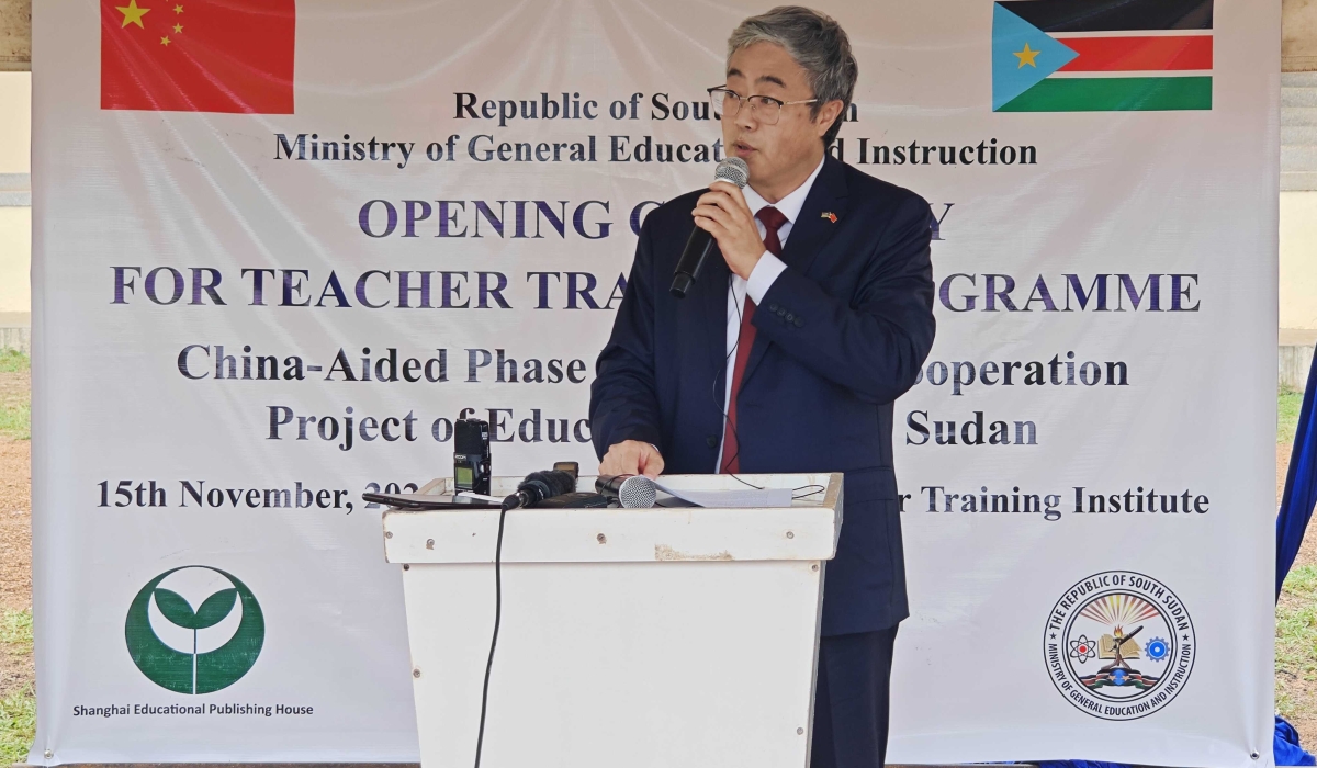China's envoy to South Sudan, Amb Ma Qiang, speaks during the opening ceremony of the Teacher Training Programme under the China-Aided Phase II Technical Cooperation Project of Education in South Sudan on November 15, 2023. Net