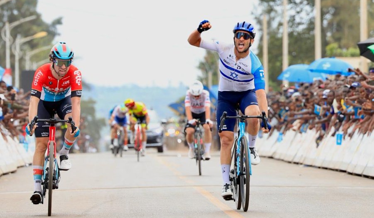 Itamar Einhorn (R) of Israel Premier Tech wins Stage 7 of the 16th Tour du Rwanda, his second stage victory in the race. His teammate Joseph Blackmore retained the yellow jersey ahead of Sunday's decisive stage-Courtesy