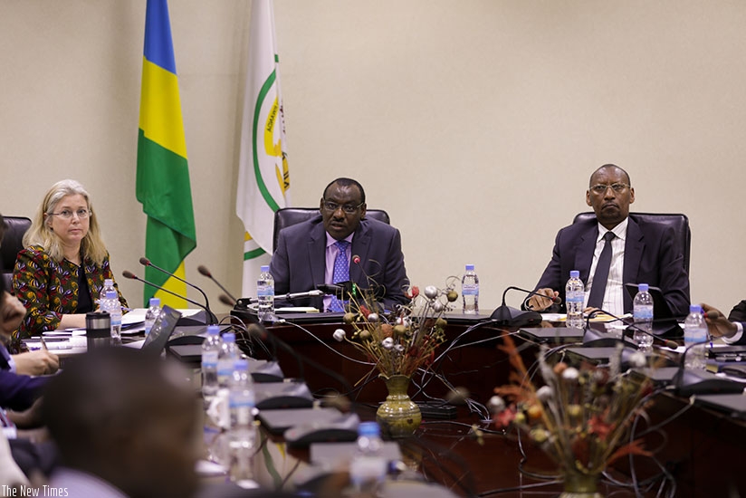 (L-R) Laura Redifer the IMF Mission Chief, Finance Minister Claver Gatete, and Central Bank Governor John Rwangombwa address journalists yesterday. Rwanda’s economy is expect....