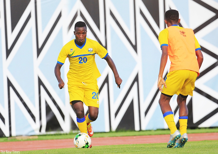 Amavubi U20 Forward Lague Byiringiro controls the ball during their training session at Amahoro National Stadium. Sam Ngendahimana.