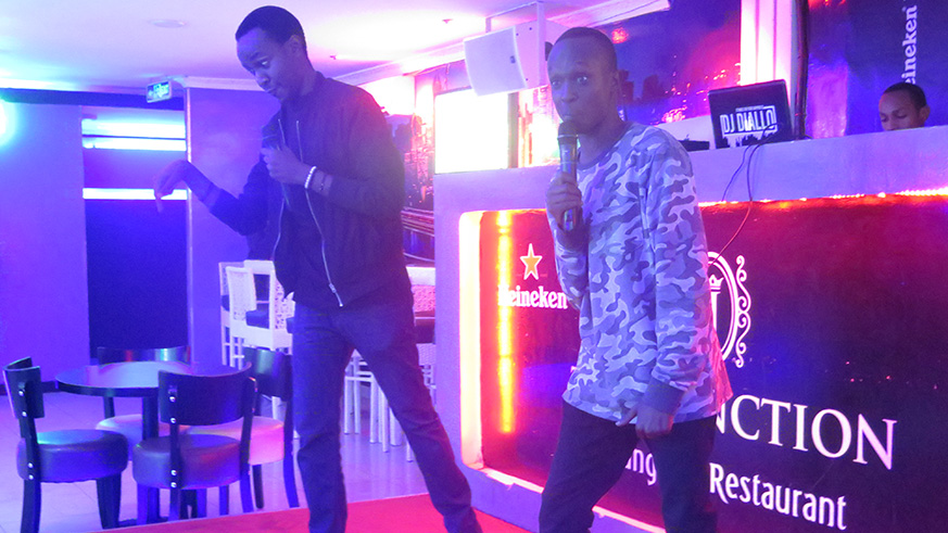 Despite artistes expected to perform failing to turn up, upcoming stand-up comedians made sure revellers were entertained with jokes and music from DJ Tyga, who proved his undisputed skills on the decks. Hosted by fellow comedian Michael Sengazi, the show brought together a number of young comedians under the management of Comedy Knights, a platform dedicated to detecting and developing young comedy talents. The platform is also commonly known for the previous Com Factory, a weekly comedy series which used to be screened on Rwanda Television. Primus Guma Guma Superstar Season 8, whose road shows commence on May 26 in Gicumbi District, was theme of the night, with comedians cracking jokes on how the annual music show is organised, the scheming by artistes to be nominated and other aspects of the show. The theme might change at every comedy show depending on trending issues in the society. The funniest joke came around when Babou and George questioned the content of some songs whose choruses are full of repetitions. In the jokes, they mentioned some songs like Meddy’s hits like Ni Njyewe, Akaramata, Amayobera and Got it (Featuring Safi), The Ben’s Ese Ni Byo, Nameles’ Nasinzia, and many other songs that have repetitions in their choruses. Revellers waited for performances from different artistes who were scheduled to headline the comedy show but only MC Tino showed up. Tino, a singer, comedian and radio presenter, talked of how he prayed for Guma Guma new face Uncle Austin until he featured among the top ten of the contest’s 8th edition. Comedian Babou chipped in and said Tino’s prayers were more realistic than Bishop Rugagi’s prophecy to Miss Shanitah Munyana that she would be crowned Miss Rwanda 2018, only for her to lose out to Miss Liliane Iradukunda. Uncle Austin, who was scheduled to perform,was reported to have fallen sick, while Jay C was nowhere to be seen. Gabiro Guitar arrived at the venue but did not perform for unknown reasons. Jerome Migisha, the Manager of Comedy Knights, said he is grateful the platform is successfully detecting and producing new talents in the industry. “We want to make this platform a talent detection hub for young comedians to join the current crop of comedians,” “Our main target is to see the comedy industry become even bigger than the music industry and I believe with the number of young comedians identified from this platform, the future of the industry looks bright,” he said. So far, over 30 young comedians have been under the apprenticeship of Comedy Knights and according to Migisha several of them includingDivin, Joshua aka Baby Face, Fred, Keffa, and female comedian Nakato are already establishing themselves and will soon make a difference in the industry. “Divin, Joshua, Keffa and Fred are among the new talents discovered, who are showing exceptional talents under this platform. Nakato for example is such an amazing talent, who is going to be a great female comedian in the industry in the near future given her potential. We believe all of them have a bright future,” he added. The show ended few minutes past 10 pm.