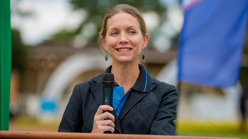 Leslie Marbury, the USAID Acting Mission Director, speaks at the inauguration.