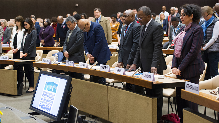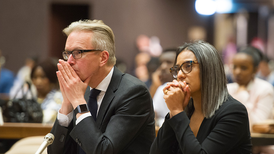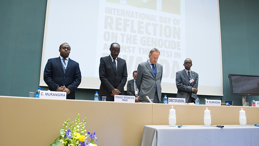 The Rwandan community; friends of Rwanda; members of the diplomatic corps and representatives of international organizations based in Geneva; met on April 10 at the headquarters of the UN Office in Geneva to mark the International Day of the Reflection on the 1994 Genocide against the Tutsi. According to a statement by the Rwandan embassy in Geneva, a message by the UN Secretary General Antonio Guterres was read by Michael Møller, Director General of the UN Office in Geneva. All speakers at the event elaborated the obligation by the international community to pay tribute to the innocent victims who were brutally murdered during the 1994 Genocide against the Tutsi and expressed solidarity with the survivors. They stressed the importance for the world to learn from the Genocide against the Tutsi and put in place effective and collective measures to prevent anything like it and other atrocities from happening again. Dr. François Xavier Ngarambe; Ambassador and Permanent Representative of Rwanda to the UN Office in Geneva elaborated on how the memory of Genocide informs Rwanda’s reconstruction and development. He made strong appeal to fight genocide denial and ensure that genocide perpetrators and accomplices are brought to justice. He further urged all states that shelter suspects of the Genocide against the Tutsi to either prosecute them or extradite them to Rwanda. “Only way to prevent genocide and other atrocities is to never forget to learn from history, to acknowledge shared responsibility and commit to collectively act to protect those at risk,” underlined Michael Møller, Director General of the UN Office in Geneva. The president of Ibuka Suisse, Cesar Murangira expressed his concerns over the ineffectiveness of the International Criminal Tribunal for Rwanda, especially the series of rulings by Judge Theodor Meron to reduce the penalties and release some of the convicted genocidaires. He also spoke about the lack of compensation provisions for the victims of the genocide against the Tutsi and appealed to the International Community to take urgent action on that issue. Réverien Rurangwa, who survived the Genocide with immense physical and Psychological wounds, shared his moving testimony on how he survived the Genocide which took the lives of his entire family. He stated that; “coping with the physical and psychological sequelae of my wounds, and telling my story, are my major reasons to live.” As it is a tradition in Switzerland, the International Day of the Reflection on the 1994 Genocide Against the Tutsi in Rwanda was preceded by the 7th April 2018 commemoration event co-organized by the Embassy of Rwanda and Ibuka Suisse.