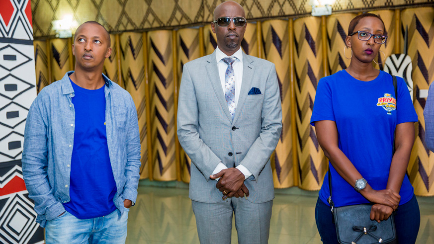 Joseph Mushyoma (left), the CEO of East African Promoters, with Bralirwa officials at the Genocide museum.(All photos by Eddie Nsabimana)