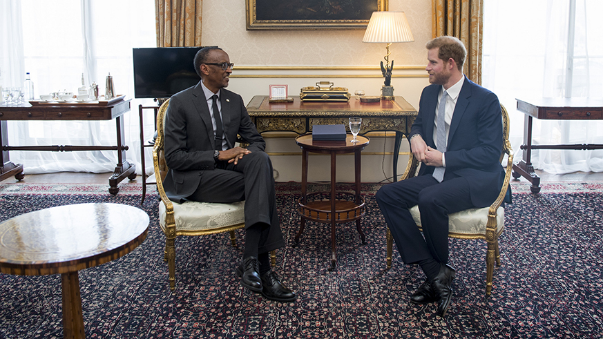 President Paul Kagame met with Prince Henry of Wales, best known simply as Prince Harry, in London, United Kingdom, ahead of the opening of the Commonwealth Heads of Government Meeting (CHOGM) in the British capital, yesterday. Prince Harry has a keen interest in conservation and this year joined African Parks as their President. African Parks is a conservation Non-Governmental agency that currently manages 13 parks on the continent, including Akagera Park. Village Urugwiro.