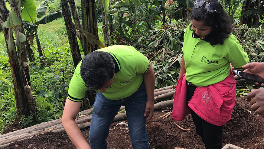 Sahasra Staff pose for a photo with Agnes Karubibi after Saturday's community service