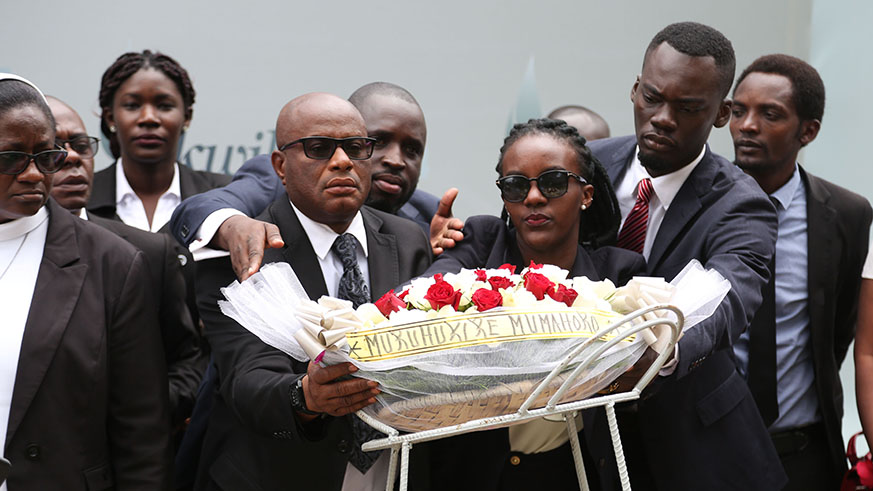 International students from the Institute of Legal Practice and Development (ILPD) lay a wreath during their visit at Kigali Genocide Memorial Centre in Gisozi yesterday. S. Ngendahimana.