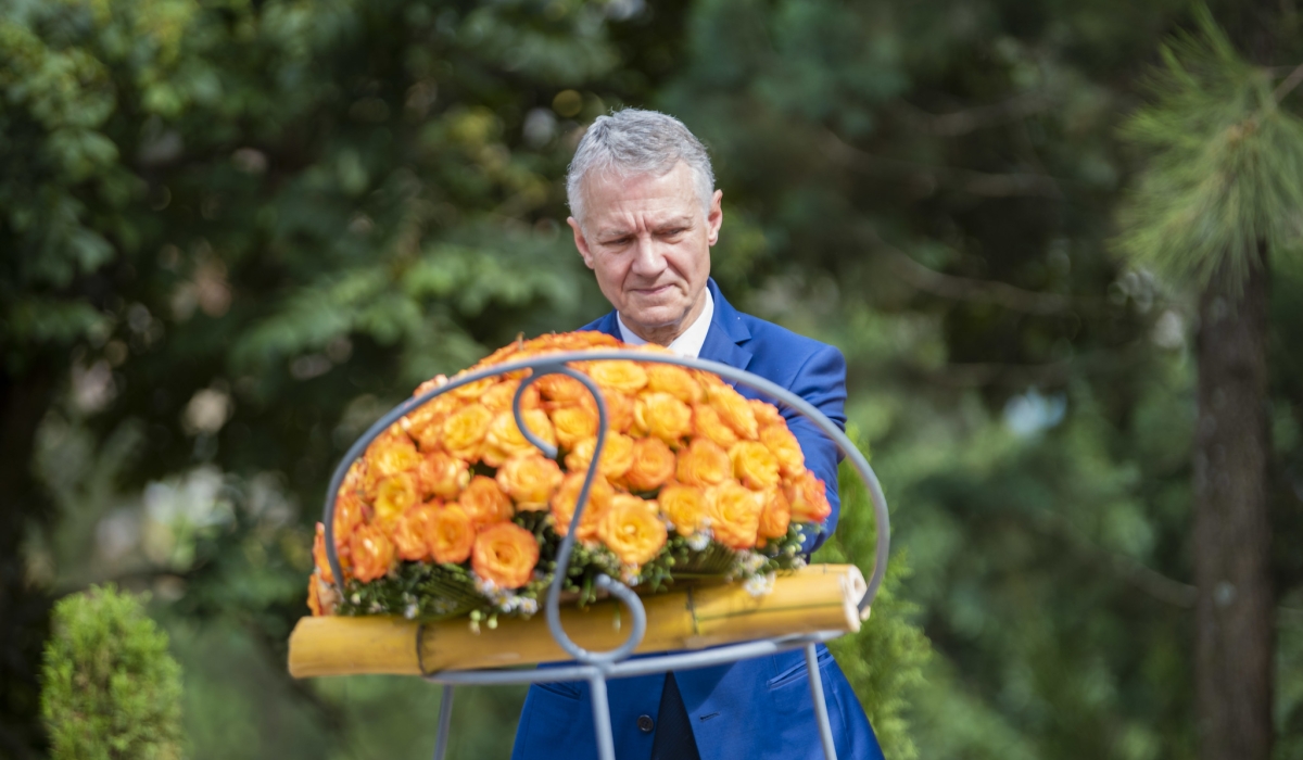 Jean-François Ricard lays a wreath to pay tribute to victims at Kigali Genocide Memorial. ALL PHOTOS BY CHELSEA NKUBITO