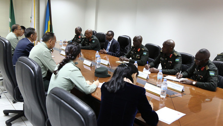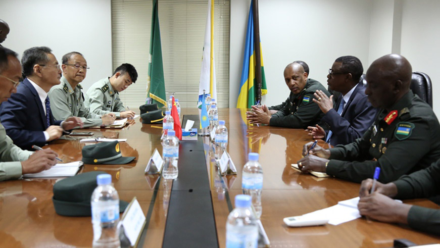 A Chinese military delegation yesterday paid a courtesy call on the Ministry of Defence, as part of efforts to further promote exchange and cooperation between the Ministry of National Defence of the People’s Republic of China and their Rwandan counterparts. Led by Major General Zhang Yingli, the Chinese delegation was welcomed by the Minister for Defence, Gen James Kabarebe, and the Chief of Defence Staff, Gen Patrick Nyamvumba. According to a statement, the bilateral discussions reviewed the progress of the ongoing military relations between the two countries and the willingness to enhance it further. Minister Kabarebe emphasised during the discussions that “Rwanda and China have always had good relations, so this visit is aimed at discussing ways of strengthening the existing cooperation”. “The forces of the two countries maintain a good level of cooperation in terms of training and logistics,” reads the statement in part. Meanwhile, the Chinese head of delegation commended Rwanda for its efforts to advance peace and security in Africa through various peacekeeping engagements. “This is clearly in common interest for China and Rwanda,” Zhang noted. editorial@newtimes.co.rw