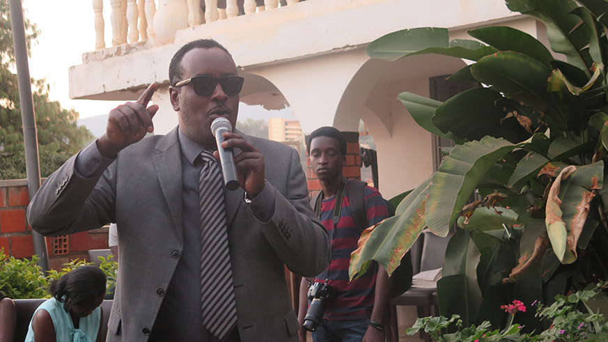 John Bunyeshuri, the founder and organizer of Kigali Fashion Week, speaking to models - Eddie Nsabimana