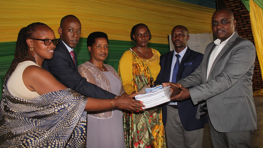 Prof Kalisa Mbanda the chairperson National Electoral Commission (NEC) declairing winners in Nyagatare District. Kelly Rwamapera.