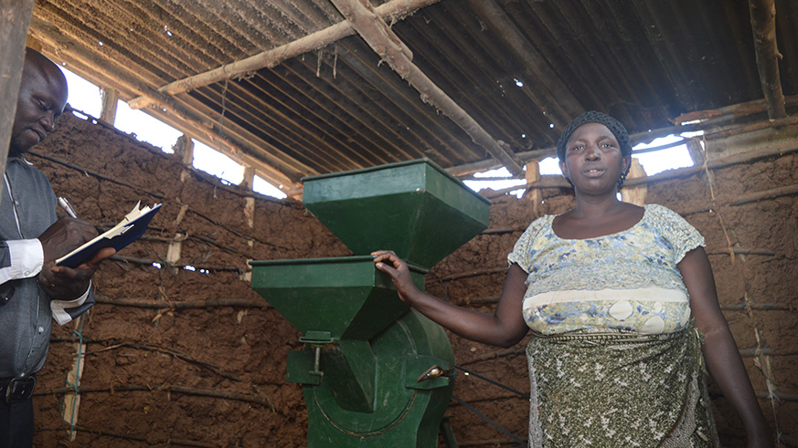 Nishirembere Elian showing her new milling machine that uses electricity. Photos by Joseph Mudingu.