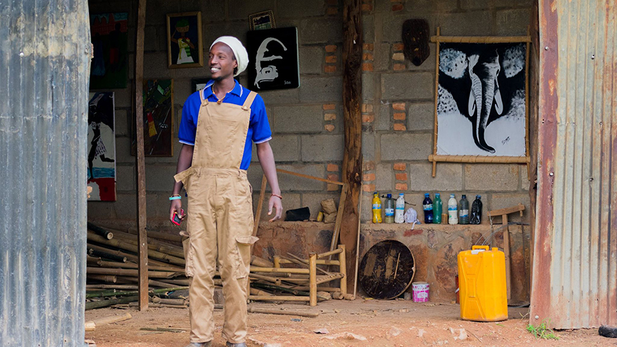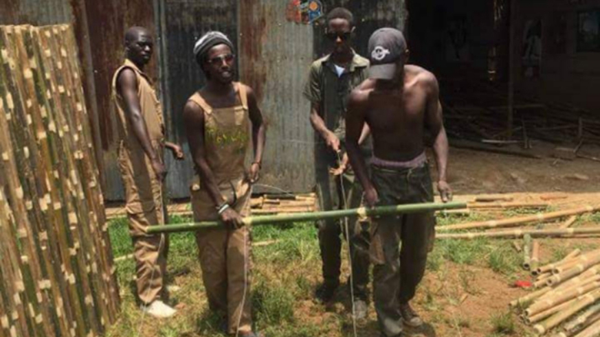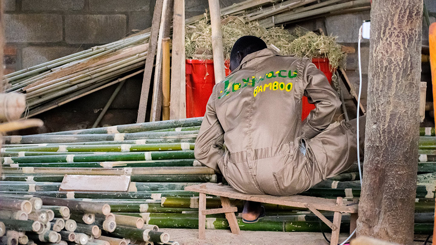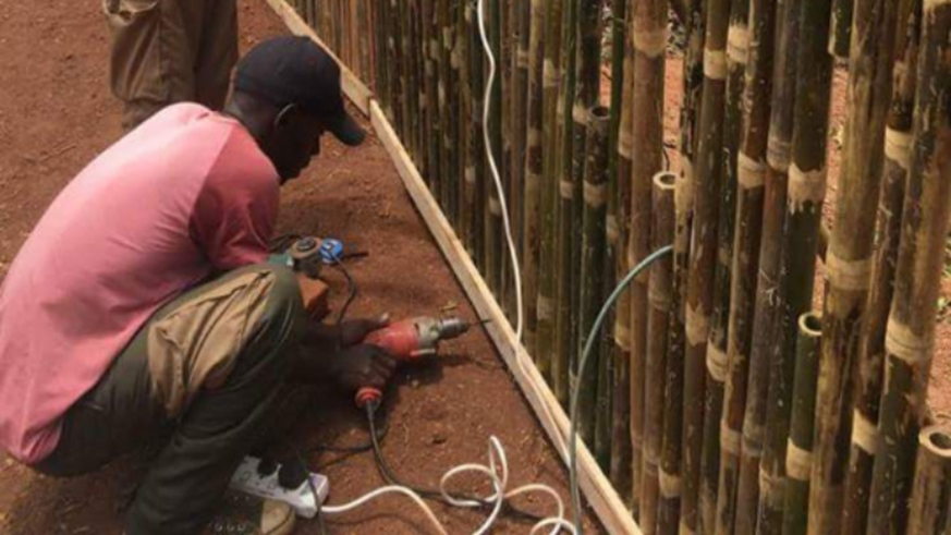 Gitori and his colleagues make a bambo fence. All photos / Joan Mbabazi.