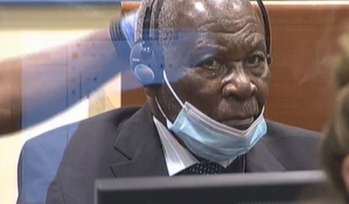 Genocide suspect Felicien Kabuga at the Hague-based UN court. The hearing is set to resume next week on Tuesday, October 11 with the defense continuing to cross examine the witness. / File