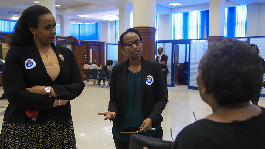 Bank of Kigali (BK) has joined the rest of the world to mark the ongoing International Customer Service Week. The lender kicked off the customer care week with several members of its executive team putting aside their supervisory ranks to serve clients as tellers and receptionists. Desire Rumanyika, Chief of Operating Officer and Flora Nsinga, the Chief Human Resources and Administration Officer are some of the six members of the executive management who were seen mingling with clients at the BK headquarters in Kigali. The Executives told The New Times that the gesture was intended to put the management into the staff’s shoes but also an opportunity to reach out to their clients and hear their feedback. “More often we put the staff on pressure to deliver the best service there is without full understanding of the possible challenges that might arise in their work on a daily basis,” Rumanyika said. BK has about 80 branches across the country with 40 spread across the three districts that makeup the City of Kigali. It has about 1,500 employees. “We also happen to have the biggest number of customers compared to other banks, so today we were inspired by the International Customer Service Week to also remind our staff the reason we are here. It is the reason we decided as the Executive to lead by example how we should treat our customers and it will be done through October 5. Our customers deserve the best service possible.” Rumanyika added. While Rumanyika urges the customers to continue pushing for the best service, he also says that it is upon them to ensure that the staff has all the possible necessary facilitation to deliver best service to the clientele, “because the staff represent us what we do before our customers.” Rose Ngabire, Head of Customer Experience at the Bank said that there are a number of activities the bank is engaging in, among them, was to bring the Executives to experience the staffs’ experience, appreciate our agents who serve our customers outside the traditional banking system. Chief Operating Officer Desire Rumanyika writes on the customer appreciation board in celebration of customer service week. Chief human resource and administration officer at BK Flora Nsinga and Head of customer experience management at BK Rose Ngabire (C) listen to a customer as the Bank celebrates the Customer Service Week. Photos by Nadege Imbabazi. The customer service week will culminate on Friday with Bank’s CEO serving breakfast to its clients the Headquarter. “From this experience they are going to find solution to issues like long queues and make some changes. May be to see how we can educate our customers to embrace our digital services more. We have many digital services but we see little transition towards that. We have to change the attitude,” Ngabire said. She added; “But we also want them to hear from our customers. We want to learn from those mistakes and serve our customers better. This is all aimed at making sure that we appreciate our staff but also improve the service we give to our customers”. Customers on a queue at Bank of Kigali. Despite this Customer Service week, Ngabire says, BK conducts annual surveys to understand customer challenges and needs, which has continued to facilitate the institution to make decisions based on customer feedback.