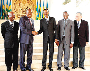 Country also merits hosting CAN 2016 URUGWIRO VILLAGE - Issa Hayatou, the President of the Confederation of African Football (CAF) yesterday paid a courtesy call on President Paul Kagame, at Urugwiro Village, from where he hinted at the prospect of Rwanda hosting the Under 17 games in 2011. Hayatou, who is in the country for the duration of the on-going 16th Under 20 African Youth Championships (AYC), stressed that he had consulted the President on their coming back in two years’ time to make arrangements for the U-17 African championship. This, he pointed out, meant that they (CAF) were well aware of what has been accomplished.