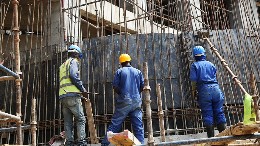 Workers at a construction site in Kigali. Sam Ngendahimana.