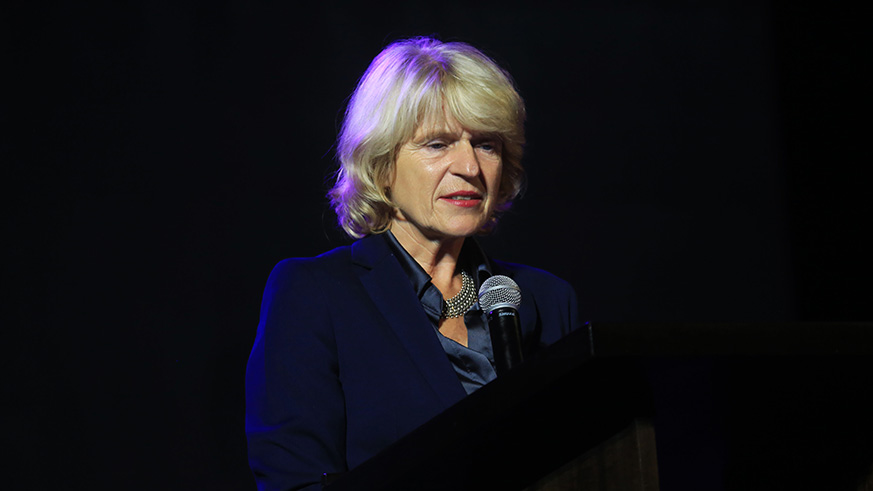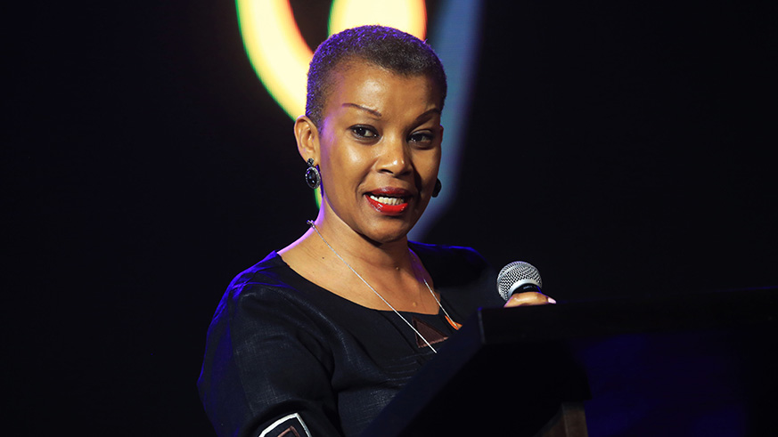 Rwanda Convention Bureau Denise Omany gives her remarks at the movie gala night.