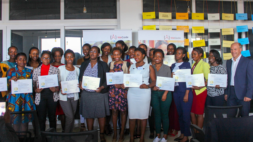 FORTY-EIGHT women have successfully finished the WeCode Quality Assurance Software Testing training programme. They were awarded with certificates of excellence on Friday. According to Yvette Uwineza, the Programme Manager of WeCode, a programming school and IT agency, it aims at nurturing young women into future leaders in the tech sector. The programme was designed to address the prevailing gender digital divide. During the two months course, she added, students gained teamwork, coding, planning and communication skills, among others as part of the school’s initiative to facilitate female IT enthusiast to access global markets. Out of the 48 graduates, 21 of them received the International Software Testing Qualifications Board certificate, a tool that could potentially propel them to global job markets. WeCode partnered with Muraho Technology Ltd to expand the business oriented training programme. WeCode is an affiliate of the Chamber of ICT of the Private Sector Federation. Dan Munkittrick, the CEO at Muraho Technology, said that the programme does not only train women, but also links them to potential employers. Muraho has an affiliate company in Canada. He noted that the knowledge the graduates were equipped with, will help them in the future to solve software problems. “Women can do what men can and even do it better,” Munkittrick said. Isabella Bucyeyeneza, one of the graduates, said that she learnt software project management and quality assurance. She never had prior background in IT. For the trainees, the course has opened them doors to new ideas and now some graduates plan to start mentoring fellow women in ICT. “With the skills that I have learnt, I am hoping to start up my own software company in Rwanda, this is a dream that will come true as I get more skills and money,” said Marie Luce Mugire, another trainee. Cindy Tempel, one of the IT Trainers in Technology, advised graduates to have self-confidence and set career goals and objectives. Wecode implementation partner Muraho Technology is offering all graduates internships of 4 months, overseeing live project work in QA so that they gain experience enabling them to move into paid project work. Many of these interns are supported by RDB, through Capacity Development and Employment, through their internship facilitation that offers companies opportunities to access their vast intern database editorial@newtimes.co.rw