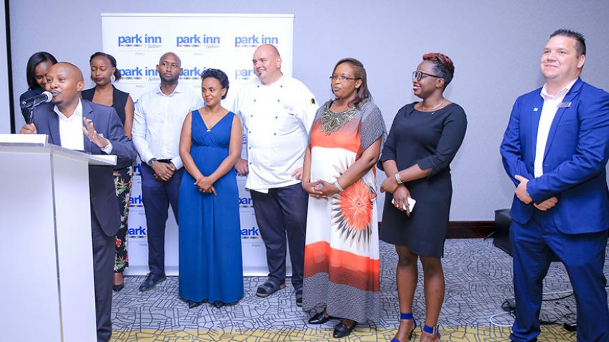 At a colourful ceremony held on Friday, November 16 at Park Inn by Radisson in Kiyovu, the hotel staff members, guests and friends of the brand met to welcome Bernard Theron, the new General Manager. The event was an opportunity for the hotel management to share experience with the clientele besides a good opportunity for networking between guests. The guests were treated to lots of foods and drinks while others were able to test the wide range of fine wines, spirits and rare delicacies prepared by the hotel’s renowned Executive Chef Carsten Gust. After rounds of refreshments and networking between guests and staff members of Park Inn, a raffle was played that saw lucky guests win assorted prizes that included complimentary packages at Park Inn Hotel. While welcoming the guests, the Director of Sales at Park Inn, Kennedy Kinyua said the event is held annually, only that this time it coincided with the welcome party for the new General Manager. “This event is held every year by Park Inn by Radisson and it’s always an opportunity for us to appreciate our clientele for being with us throughout the year. It is with great pleasure to use this opportunity to welcome our new General Manager who joined us recently to help grow and improve the hospitality at Park Inn by Radisson,” says Kinyua Before joining Radisson Hotel Group, Bernard Theron held numerous positions in the hospitality industry, including working as General Manager at Chrismar Hotel Group and most recently General Manager, White Sands Conference and Beach Resort. “This is his first position within Radisson Hotel Group. He chose our company to become a part of the Radisson family and grow with a group with worldwide experience and a hunger for guest service and excellence in delivery,” said Kinyua. Theron expressed his pleasure of being part of Park Inn by Radisson saying he was looking forward to serving better the hotel’s clientele. “Every moment matters to our guests and I will ensure that they receive the attention and service expected and deserved. I always strive to make my hotel a destination to be known for a home away from home, and we need to build relationships with our clients to ensure that we deliver what is expected, and then a little more,” said Bernard. About Park Inn A contemporary hotel in the Rwandan capital, Kigali, Park Inn by Radisson is a premier hotel choice located in the Central Business District. The hotel accommodates 161 modern rooms and suites including amenities like free high-speed Wi-Fi and is within easy reach of downtown Kigali and other government buildings like the Presidential Palace and the Kigali Genocide Memorial Center. The international airport is just 12 kilometers away, and airport shuttles to and from the hotel are available for guests.