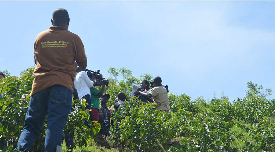 When coffee farmers in Karongi District set out to form a cooperative and start a coffee washing station to help boost their income, the first challenge they met was raising capital and finding technical guidance on coffee farming. However, these coffee farmers could soon see a turn of fortunes, thanks to a project funded by the Government of Japan (GOJ) that is working to strengthen the coffee value chain in the district. The technical cooperation project called “Project for Strengthening Coffee Value Chain in Rwanda” is expected to improve the quality of coffee and supply chain and boost farmers’ incomes, according to His Excellency Mr. Takayuki Miyashita, the Japanese Ambassador to Rwanda, who visited the district to see how Japan’s cooperation is contributing to the coffee sector development in Rwanda. The Japanese ambassador was speaking during a tour of KOPAKAKI Coffee Cooperative in Karongi on Tuesday, November 27, which involved officials from the National Agriculture Export Development Board (NAEB), GOJ and local coffee farmers. “I am happy to see the impact of Japan’s project on the coffee farmers and how it is strengthening the value chain. The Government of Japan has been supporting the coffee value chain among other cooperation in the agriculture sector in Rwanda. Since 2017, Japan International Cooperation Agency (JICA) in partnership with NEAB started a technical cooperation project which aims at building a resilient coffee value chain,” said Amb. Miyashita According to Dr Naohiro Matsui, the chief advisor of the project, the state of the project will help reduce post-harvest losses, enhance value addition, increase competitiveness in the market, and thus make coffee business more profitable. Sandrine Urujeni, the Deputy CEO at NAEB, said the project is expected to boost exports and create more than 100 new jobs because it provides technical guidance on coffee farming management such as seeding, farm lay out, fertilizers everything involved in coffee production. Urujeni thanked GOJ for its continued support and urged farmers to embrace modern farming technologies and value addition to become more profitable. NAEB has been emphasizing value addition and encouraging farmers and cooperatives to take advantage of coffee washing stations to boost the quality of coffee exports. Ambassador Miyashita also toured the KOPAKAKI coffee farm with the media and other stakeholders in the sector including members of Rwanda Coffee Cooperative Federation (RCCF). The project has been working with two pilot cooperatives and instructing them in efficient ways to grow coffee with the advice of Japanese coffee experts including Mr. Jose Kawashima, a top notch coffee specialist from Japan. The field visit The delegates together with the ambassador visited the coffee nurseries and had a chance to inspect the seed beds, the coffee washing station and leant how the project is helping and training their coffee farmers. While explaining to the delegates about the new methods of making a modern coffee nursery bed, Jean Claude Harerimana the field officer in Bwishura Sector said that what they have learnt from Mr. Kawashima is amazing. “As you can see here, these are two different varieties from two different nursery beds because of the way each was planted. There is a big difference in the two plants though they were planted in the nurseries at the same time. The methods will definitely help us double or triple our harvest and the quality of our coffee will improve automatically,” said Harerimana. After the demonstration by the field officer, the delegates also visited an experimental coffee field, where Dr.Matsui was instructing the coffee farmers in collaboration with Dr. Mario Serracin, another Japanese coffee specialist.