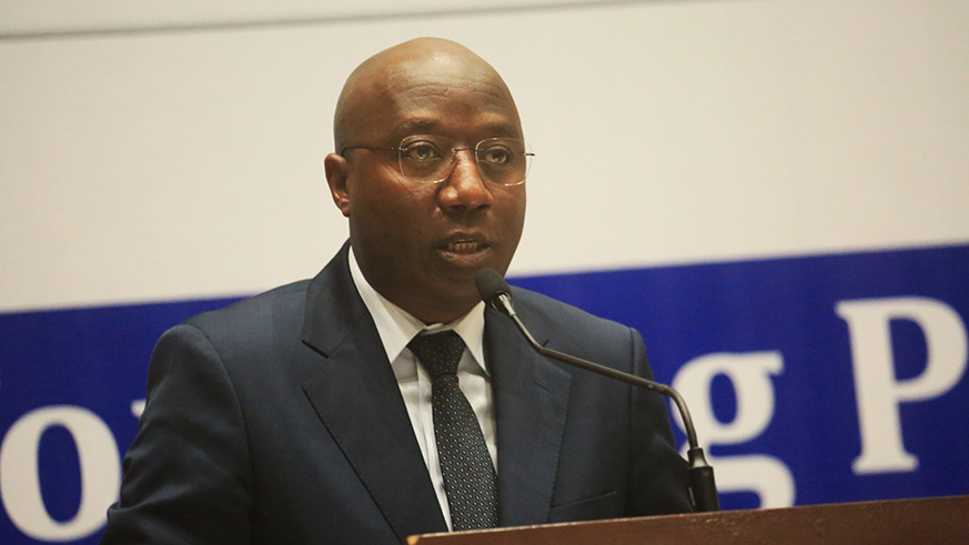 The Minister for Finance and Economic Planning, Uzziel Ndagijimana gives his remarks during the event yesterday