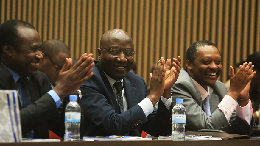 Prime Minister Edouard Ngirente , Local Government Minister Anastase Shyaka, Finance Minister Uzziel Ndagijimana during the official launch of the report(Sam Ngendahimana)