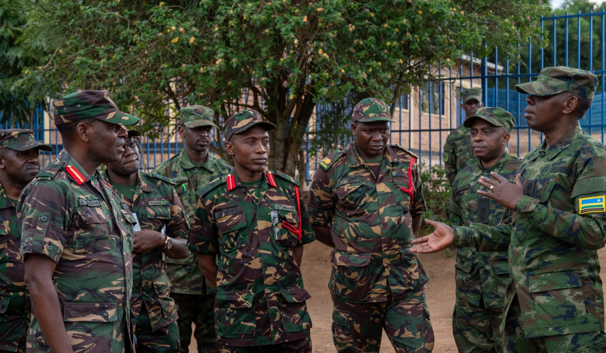 Col Justus Majyambere, the Rwanda Defence Force (RDF) 5 Division Commander, welcoming the Tanzania People’s Defence Force (TPDF) delegation led by 202 Brigade Commander, Brig Gen Gabriel Elias Kwiligwa, upon arrival at Rusumo One Stop Border Post, on May 7. Photo courtesy of RDF.