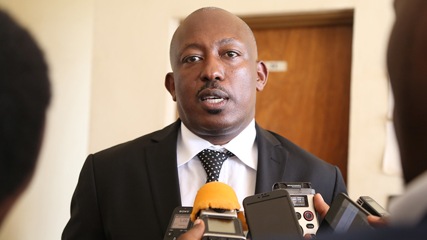 Mugisha speaks to journalists at the Supreme Court last week. Sam Ngendahimana.