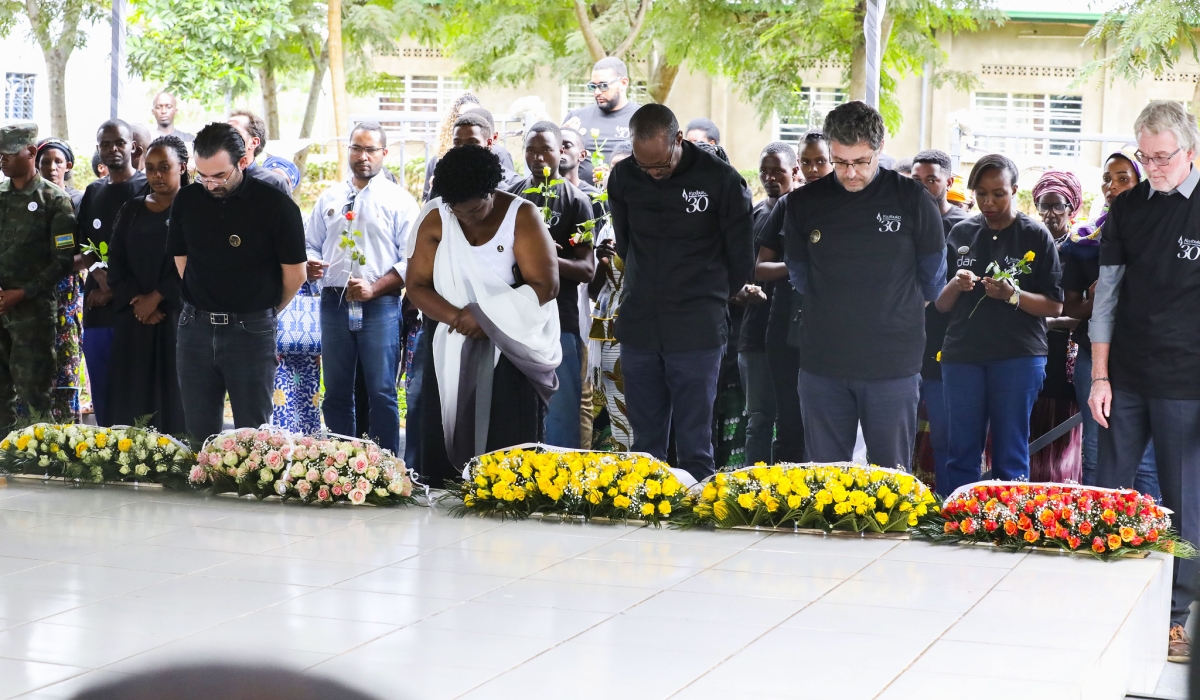 Management and staff of five companies involved in the construction of the proposed Bugesera airport observe a moment of silence in honour of the victims at the Gashora Genocide Memorial on May 8. All photos by Craish Bahizi