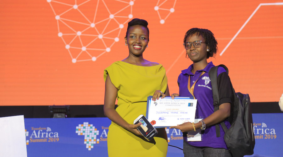 Josephine Uwase Ndeze, who hails from the Democratic Republic of Congo, is the winner of Miss Geek Africa 2019, a competition that brings together young female entrepreneurs in technology space. Uwase designed a mobile platform that can enable expectant mothers to monitor their health during pregnancy. The platform is connected to a smart bracelet, which checks the woman’s vital signs and sends them to an emergency service provider in real time. Basically, it will enable to monitor their progress, symptoms if present, and connect them to their health care providers should the results necessitate an emergency. Uwase’s vision is to contribute to bringing down maternal deaths. She received Rwf3 million in cash prize, a certificate and a technical membership in the Institute of Electrical and Electronics Engineers (IEEE). With the membership, she will have access to the most essential technical information and networking opportunities globally. Uwase was awarded yesterday during the closing ceremony of the fifth Transform Africa Summit, which was taking place at the Kigali Convention Centre. She was awarded along with other contestants. The first runner up, Gladys Wairimu, from Kenya, designed ‘Big Brother Surveillance’ that seeks to tackle illegal poaching in parks by using drone technology for surveillance. The 19-year-old received Rwf2 million. The second runner-up, Ndeye Fatou, from Senegal, developed ‘SOS Sang’, which will enable healthcare providers to link with blood banks to ensure that they have access to blood efficiently. It is a web platform that manages and links all blood storages in hospitals in Senegal. The platform is optimised to identify matching and closest blood donors in case of shortage of blood. She walked away with Rwf1 million in cash prize. The other seven finalists are from Kenya, Mauritania, Rwanda, Mali, Benin, and Ghana. They developed everything from solutions for the visually impaired people and addressing haemorrhage, to platforms that have potential to link rural farmers to markets and e-commerce solutions. According to Girls in ICT Rwanda, the organisers of the competition, this year’s edition attracted over 250 applications from 15 countries. Last year, Salissou Hassane, from Niger, was the winner of the competition. The New Times was one of the sponsors of this year’s Miss Geek Africa competition. editor@newtimesrwanda.com