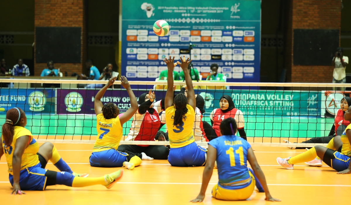The national women sitting volleyball players during a game against Egypt. Women and men sitting volleyball teams will begin a 10-day intensive residential training camp at Gisagara Gymnasium on Friday, October 14. / Sam Ngendahimana