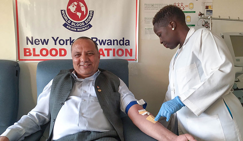 Arjun Mainali, a Nepalese-born American citizen has donated blood at least 171 times in a 30-year journey that has taken him to six continents. The 51-year old, who has so far given an estimated 85,000 milliliters of blood, arrived in Rwanda around the time the country joined the global community to celebrate World Blood Donor Day, marked on Friday. Mainali started donating blood in 1987 at the age of 19, and since then, he is believed to have saved up to 513 lives. On Wednesday evening, at Rwanda Biomedical Centre in Kigali, Mainali donated blood in Rwanda, making it his 17th country where has donated blood, and the 4th in Africa after Uganda, Malawi, and Ethiopia. “Many times, I heard that people lost their precious life due to not getting blood on time. I could not tolerate that painful situation. So, I decided to donate blood,” he said. In an interview with Saturday Times, he said that he used his own money to purchase an air ticket to come to Rwanda for the humanitarian act, and has funded his trips to other countries where he has been. Mainali said he donates blood four times a year, however, in 2014; he donated six times, giving 9.5 liters of whole blood. In the same year, he also donated platelets 13 times. He said he has a goal to “unite the strength of blood donors from around the world to help maintain the current level of blood donation participants in developed countries, and encourage blood donors to increase blood donation in developing countries.” He said his inspiration to start donating blood was sparked when he read a story titled ‘The Blood Donor’ while he was in college. “I was influenced by that story to donate blood,” he says. “Through the years, I have seen, so many times, relatives fearing to donate blood to save a loved one, thinking that donating blood makes one’s body weaker,” he said. In a discussion he held on Thursday with a group of youths in Kigali, he urged them to have a heart to donate blood for he who provides blood provides life. To be able to give this life, Mainali urged the youth to shun bad vices like abusing drugs, saying that this not only harms the life of the prospective donor, but also contaminates their blood and it cannot be donated. “My aim is to inspire more and more people to donate blood. So, I tried to motivate as many people as I could.” He said a male has 76 milliliters per kilogramme and female has 66 milliliters, yet the body needs 50 milliliters of blood per kilogramme to survive daily. About Blood Donor Day On June 14 every year, the world marks the World Blood Donor Day, an event that serves to thank voluntary blood donors for their life-saving gesture. It also serves to raise awareness of the need for regular blood donations to ensure that all individuals and communities have access to affordable and timely supplies of safe and quality-assured blood and blood products, as an integral part of universal health coverage and a key component of effective health systems. editor@newtimesrwanda.com