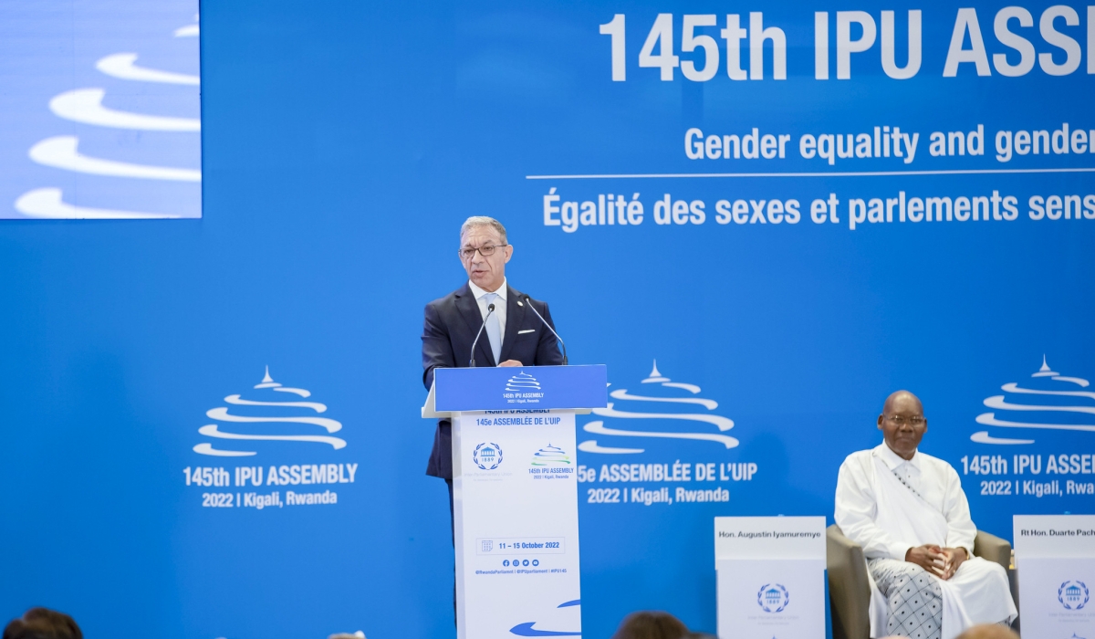 President of Inter-Parliamentary Union, Duarte Pacheco delivers remarks at the 145th Assembly of the Inter-Parliamentary Union that is underway in Kigali from October 11 to 15. Village Urugwiro