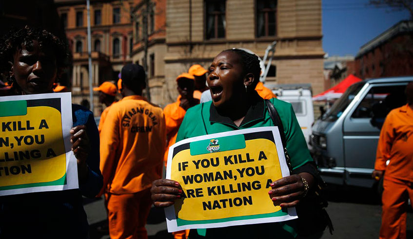 In January this year, the nation was shaken by the news of the murder of Alexia Mupende. The model had been killed by a domestic worker at her father’s home in Nyarugunga Sector, Kicukiro District. And though her death may or may not have been directly linked to femicide, the barbarian act was still violence against women. Regardless of the strategies in place, violence against women has continued to prevail in the country and beyond. For example, in Kenya, last year, a number of cases of women being murdered emerged. Dominican Republic women work to stop femicide. One outstanding case was that which involved a famous TV journalist, Jacqueline Maribe, who alongside her fiancée Joseph Irungu, was charged with the murder of one Monica Kimani, a business woman whose body had been found lying lifeless in a bathtub, with her hands tied and her throat slit. Both Mupende and Kimani’s unfortunate fates present an insight on how rampant the case of violence against women still prevails despite efforts in place. Embrace Women Group during a press conference. The group called on Kenyans to turn up for a vigil at the University of Nairobi in memory of femicide victims. Net photos While femicide is a fairly conferred aspect, the crime is one among many other things denying the rights and freedom of women. According to World Health Organisation, femicide is generally understood to involve intentional murder of women because they are women, but broader definitions include any killings of women or girls. Statistics go on to show that a large proportion of femicide is of women in violent relationships, and are committed by current or former partners. The ‘Global Study on Homicide: Gender-related killings of women and girls 2018’ shows women are far more likely to die at the hands of someone they know. Women hold signs during a protest against ongoing violence against women in Cape Town, South Africa. A total of 87,000 women were intentionally killed in 2017. More than half of them were killed by intimate partners or family members, meaning that 137 women across the world are killed by a member of their own family every day, the report shows. Africa was also the region with the highest rate of females killed purely by intimate partners in 2017 (1.7 per 100,000 female population). What could be perpetuating this vice? Gender activist Sharon Mbabazi says culture definitely has a role to play, especially among the different societies that have normalised violence against women. This, she says, takes a toll on the image women tend to have for themselves. “Such a crime creates fear in such a way that women don’t feel comfortable expressing themselves, they remain silent even when they have issues affecting them,” she says. Ngozi Odawayi, the founder of Bookie Book Bop Club, says it is unfortunate that the issue of violence against women is still on the rise even with the many awareness campaigns. She, on the other hand, says that the men (who are the perpetrators in most cases) who abuse women either emotionally and physically have psychological issues, noting that a man who is mentally well cannot violate a human like that. “I think there are people who are mentally deranged. These women are mostly killed by their loved ones or their partners,” she says. She also believes that cultural norms do have a role play, for it perpetuates some people into thinking of women as weaker and inferior. “It’s hard to believe that those beliefs are tolerated even in this 21st Century. Believing that women don’t have any rights leads to abuse. And you know there is always an issue of violence before it gets to femicide, so when this abuse is not taken care of it eventually leads to murder.” Bertin Ganza Kanamugire, a gender activist and founder of Afflatus Africa, agrees with Odawayi saying that it’s hard for a person without a mental illness to commit such savage acts. “Society needs to understand that effects of such are very detrimental for they can affect generations and generations.” Kanamugire also believes that at times people experience traumatic childhoods, something that affects their actions and perception in life as adults. How can this be addressed? In order to prevent such killings, a more comprehensive range of coordinated services needs to be provided by police, criminal justice systems, health and social service, according to “The ‘Global Study on Homicide.” “Moreover, in order to prevent and tackle gender-related killing of women and girls, men need to be involved in efforts to combat intimate partner violence/family-related homicide and in changing cultural norms that move away from violent masculinity and gender stereotypes,” it goes on to state. Odawayi is also of the view that what needs to be done is to continue creating awareness in society. “When I talk about awareness I mean starting from the grassroots, engaging students to be aware of what is out there such that when they get there, to that time of making choices, they do the right thing and also be wise enough to choose the right partner,” she says. She also states that people need to be encouraged to seek psychological help. People tend to keep everything (bad experiences) yet when such feelings are bottled up, they finally explode. “Another thing is getting men involved in the awareness, this way, they will understand that it is not right to see women as inferior. But also, policies to address such crimes need to be made harsh enough,” Odawayi says. Kanamugire shares his view noting that there is need to make use of the media to keep on educating the masses about such evils. “Let’s put into consideration that we are all human beings, lets treat each other with respect for we are all equal. It’s basically encouraging gender equality and promoting human rights,” he says. Mbabazi believes that education is one of the most powerful tools that can be used to stop femicide. This is why she sug