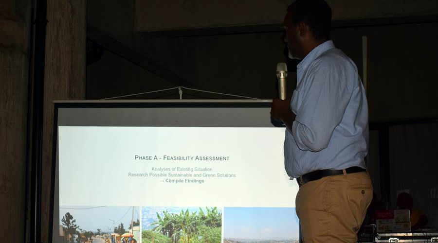 Eudes Kayumba, Deputy Team Leader of the Green City Pilot project said that the preliminary feasibility study was submitted and no resident will be relocated. / Michel Nkurunziza