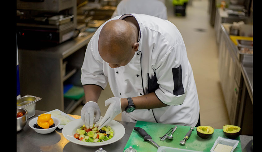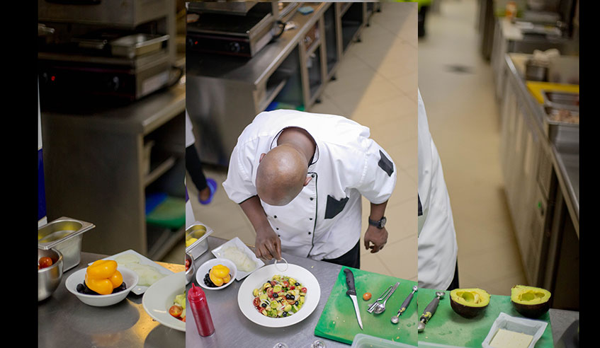 Anyone who enjoys cooking has probably wondered about what it might be like to work as a chef at a high end eatery. And let’s be honest; much as we all enjoy a perfectly-cooked meal, very few will endure the time it takes for one to cut their teeth in the world of professional cooking. Besides the formal education in culinary arts, for many, the knowledge and skills are simply gained during those long hours in the kitchen. However, those who want to reach the pinnacle of the profession could be well served by choosing a culinary degree in addition to an apprenticeship. Though he is Rwandan, Fred Ntare started his career in Kenya because it is where he was born. While young, he says he had many choices but later in life, decided to become a chef, to the surprise of his parents who wondered why he chose that against many career options. Kiyimba joined Park Inn from Intercontinental Hotel in Kenya in April 2018, and has loved every day of working at the hotel. “I went through college in Kenya where I was taught everything about becoming a chef which takes time. It requires countless hours of hard work, especially in the early years. “Paying your dues is definitely what aspiring chefs must do to reach the upper ranks of the profession,” says Ntare. He narrates that after school in 2006, he did three internships in one of the best hotels in Kenya and it is here that he horned his skills in the kitchen. “I spent most hours in the kitchen; I would work from morning to 9pm as if I was being paid a salary. However, the exposure to professionals in the kitchen is what matters, and over time I worked my way up the ladder to the more appealing tasks. “The time I spent toiling in the trenches of kitchen helped answer the big question: Is this what I really wanted to do? And that was a yes,” says Ntare. According to him, additional training under the tutelage of a professional chef, whether it’s through an internship, apprenticeship or simply through day-to-day work, will sharpen the skills and knowledge every chef needs. “I started as a casual and after I went to a level called a polisher and later I jumped the other step and went straight to senior position because of the passion and love that I had for the job,” he narrates. Ntare says that he loves to stay in one place and that way he gets and acquires the needed knowledge. “I am a person who does not move from place to place. I love to leave a legacy and you can only do that when you stay longer in a place. His advice to those who want to become chefs is that cooking is an art and one has to be dedicated and passionate about it. Cooking people have to go to school and learn the art of cooking. “Formal education is not required to become a chef. However, a degree from a culinary school may offer exposure to a wide range of skills and ideas that can’t be found anywhere else. A culinary degree may also be an advantage when looking for a job, as it provides background learning,” he says About working in Rwanda, most specifically at the Kiyovu-based Park Inn, Ntare says it is one place that he found very conducive to work. “Rwanda is a very beautiful place to work and I believe that I will stay for some time. “I love cooking local delicacies here and what drives me is the love I have for cooking and the joy on a client’s face when he or she is enjoying my menu,” he adds.