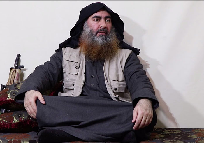 The US military has published the first footage of the raid in northern Syria that resulted in the death of the leader of the Islamic State (IS) group. Grainy video showed troops firing at militants on the ground as they flew towards the compound where Abu Bakr al-Baghdadi was hiding before they moved in on the ground. Baghdadi fled into a tunnel and killed himself by detonating a suicide vest. After the raid the compound was destroyed with munitions. The head of US Central Command, Gen Kenneth McKenzie, said the destroyed buildings were left looking like a parking lot with large potholes. Gen McKenzie said two children had died with Baghdadi in the tunnel - not three as previously reported. He also could not confirm President Donald Trumps graphic description of Baghdadi whimpering and crying as he died. He crawled into a hole with two small children and blew himself up while his people stayed on the ground. You can deduce what kind of person it is based on that activity, he told a news conference at the Pentagon. That would be my empirical observation of what he did. Im not able to confirm anything else about his last seconds. I just cant confirm that one way or another. Gen McKenzie said four women - who were wearing suicide vests - and one man were killed at the compound. He said an unknown number of fighters also died after opening fire on US helicopters. He added: I want to make it clear that despite the high-pressure and high-profile nature of this assault that every effort was made to avoid civilian casualties and to protect children we suspected would be in the compound. Gen McKenzie confirmed that the IS leader had been identified through his DNA - adding that samples had been on file since Baghdadis detention in an Iraqi prison in 2004. He said Baghdadis remains were flown back to a staging base for identification and were then buried at sea within 24 hours of his death in accordance with the laws of armed conflict. Gen McKenzie also said that the US military expected IS to stage some kind of revenge attack for the death of its leader. We suspect they will try some form of retribution attack. And we are postured and prepared for that, he said.