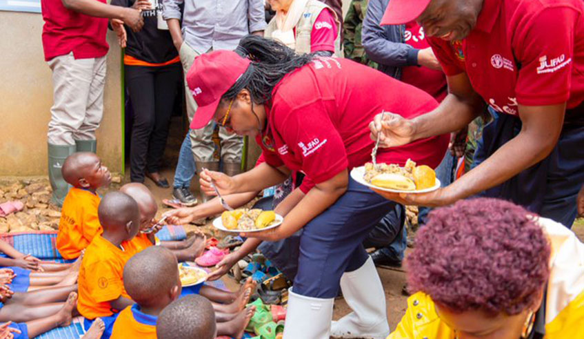 Rwanda has made tremendous progress towards overcoming food insecurity in the last decade and looks to eradicate it completely by 2025, the Minister for Agriculture and Animal Resources has said. Dr Gerardine Mukeshimana was speaking Thursday in Nyabirasi sector in Rutsiro District, Western Province as the country marked the World Food Day. The annual event is observed to promote worldwide awareness and action for those who suffer from hunger and for the need to achieve Zero Hunger, ensuring food security and nutritious diets for all. It was held under the theme, “Our actions are our future. Healthy diets for a Zero Hunger World.” Mukeshimana underscored that the country aims to not wait for 2030 to end food insecurity as envisioned by the United Nations stressing that efforts it invested in ensuring inclusive food security were paying off. Minister of agriculture and animal resources, Dr. Gerardine Mukeshimana speaks in Rutsiro District on October 31 during celebrations of world food day. Courtesy “Our country has made commendable progress in food security as it improved from 48 per cent in 2006 and reached to 81.3 per cent in 2018,” added Mukeshimana She went on to say that the improvement in food security in the country is largely attributed to the growth of the agriculture sector as a result of different policies and initiatives. Land use consolidation, improved use of agricultural inputs, protection of land against soil erosion, irrigation, reduced post-harvest losses of both dried and fresh produce, One-Cow-Per-Poor-Family (Girinka), ‘small livestock’, and high-value crops promotion are among other initiatives that Mukeshimana said are at the heart of Rwanda’s success story as for as food security is concerned. “The Government of Rwanda, in collaboration with its partners, remains highly committed to ensure food security and nutrition in the country,” she noted. Figures from the Food and Agriculture Organisation of the United Nations (FAO) indicate that more than 820 million people in the world are still hungry today with 20 per cent on the African continent. One of the poor residents from Rutsiro District who were give cows under One cow per poor family initiative hugs minister Mukeshimana. Courtesy Commenting on the case of Rwanda, Mukeshimana said that about 4000 households are still facing the same threat stressing that most victims belong to households which are headed by elderly people, those who live with disabilities, and those in the first category of social stratification. Three fruit plants per family In a bid to contribute toward government efforts to end malnutrition by 2025, Mukeshimana called on every household to plant at least three different plants of fruit and particularly urged schools to play a big part towards implementing the initiative. The One UN Resident Coordinator for Rwanda, Fode Ndiaye, lauded the country’s homegrown measures which he noted that are significantly contributing toward hunger eradication. “Let me highlight the homegrown interventions that impact the food security and nutrition at large scale such as crop intensification programme, the One-Cow-Per-Poor-Family, the kitchen garden programme, the One-Cup-of-Milk-per-Child and the early childhood programme,” he said. Ndiaye advised the Government to put in place what he called a “Centre of Excellence for Nutritious Sensitive Agriculture” to inspire other African countries to improve food security. “We believe it fixes with the country’s efforts to increase productivity and to tackle stunting, I am not aware of the existence of such a centre in Africa, not even in the world,” he noted. “Of course, the United Nations, in general, and FAO, WFP, IFAD and WHO, in particular, are really eager to discuss the best way to support that initiative should the government decide to pursue it”. A number of activities were carried out to mark this year’s World Food Day. They included planting fruit trees to launch the three-tree campaign designed to mobilise Rwandan families to grow nutritious foods, providing children with nutritious diets and distributing cows to needy families through the Girinka programme. editor@newtimesrwanda.com