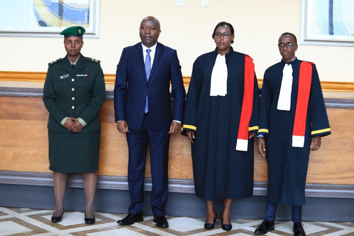 Lt Mukamana Christine (left) ; Prime Minister Edouard Ngirente; Uwase Alice and Habimana Donath, after the swearing-in ceremony on Monday, 25th, November./Courtesy