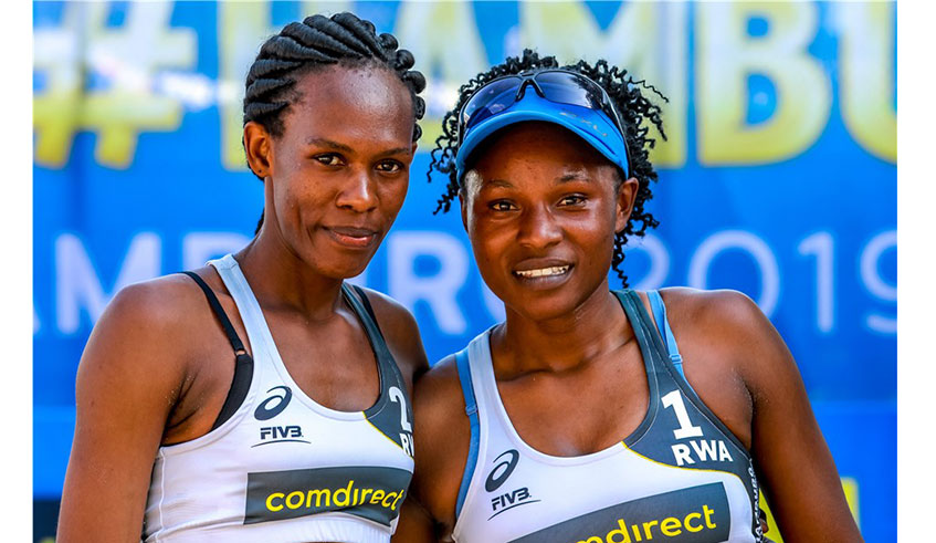 Judith Hakizimana (L) and Charlotte Nzayisenga have been teammates in both beach volleyball and indoor volleyball since 2014. /Net photos.
