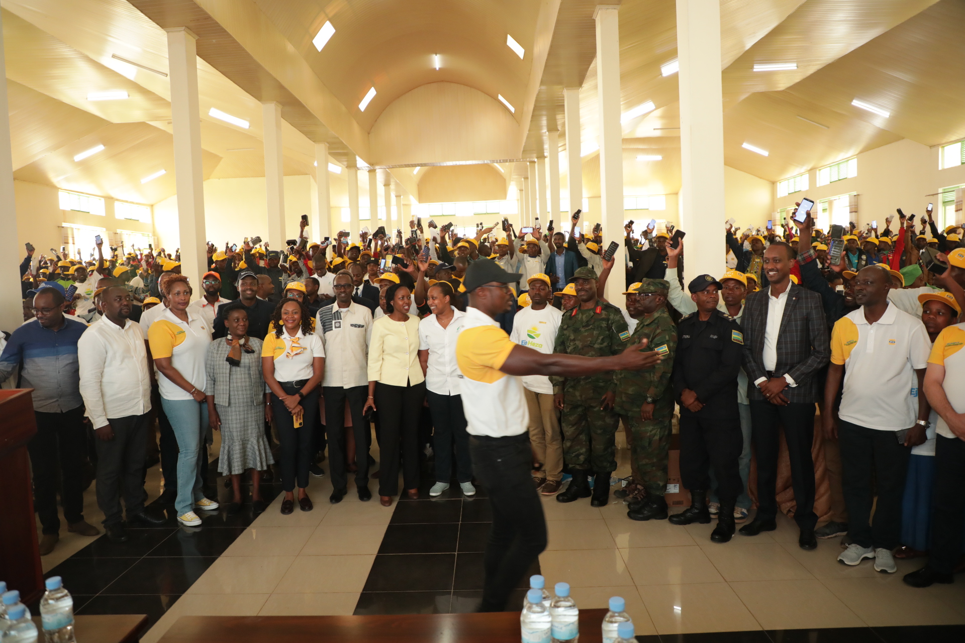 Paula Ingabire (left), the Minister for ICT and Innovation, shows two female residents of Rutsiro District how to use a smartphone on Thursday, February 13. 1000 residents in the district benefited from the Connect Rwanda campaign, which was launched in December last year. / Courtesy photos