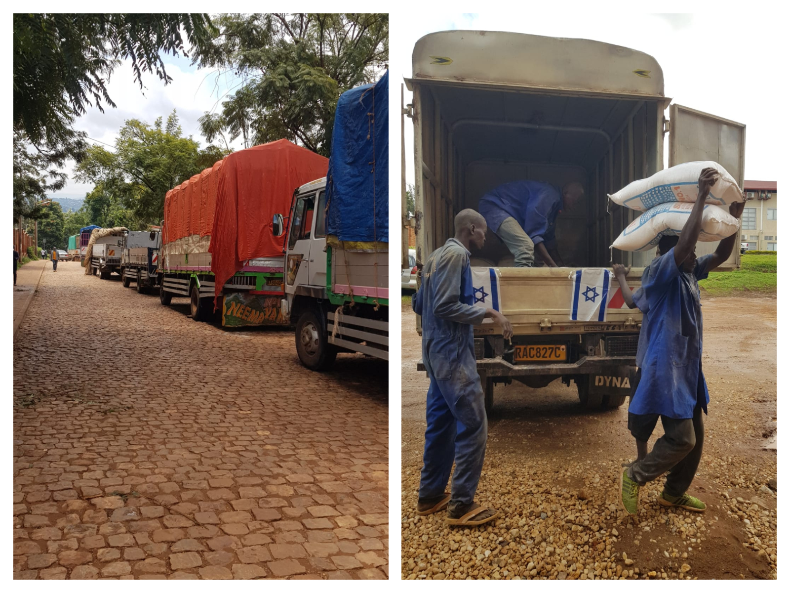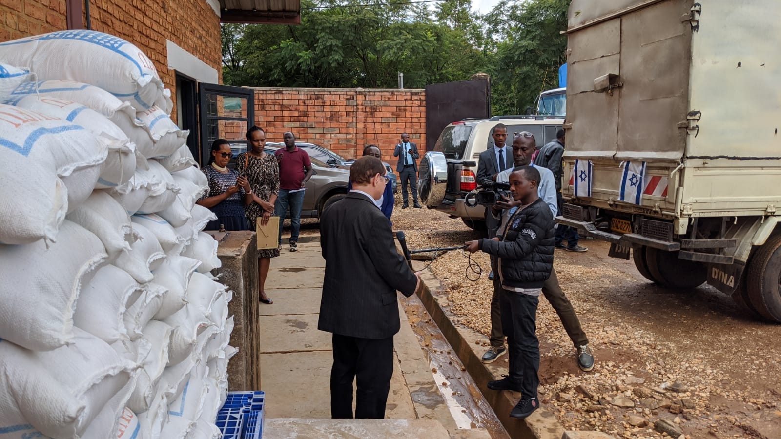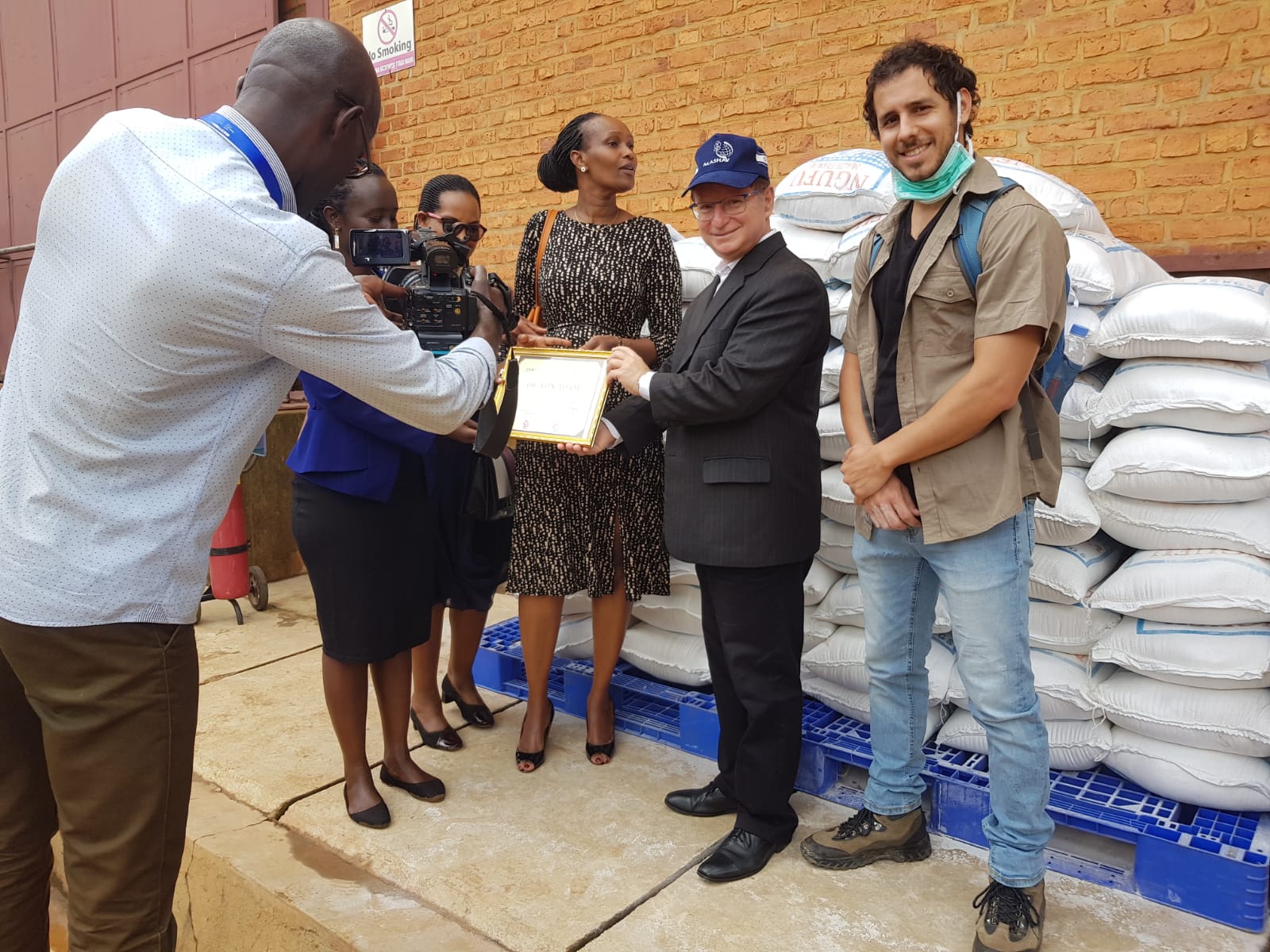 Amb. Ron Adam (2nd right) handed over the supplies to officials at the government stores located in Kicukiro District. / Photo: Courtesy.